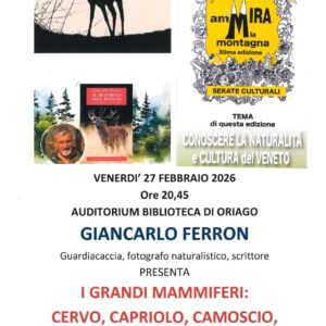 Per il ciclo AmMira la montagna presso l'auditorium Biblioteca di Oriago Giancarlo Ferron, guardiacaccia, fotografo naturalistico, scrittore ...