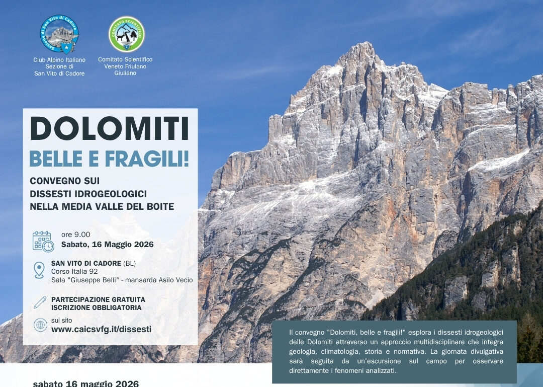 Sabato 16 maggio 2026 a San Vito di Cadore si terrà il convegno dedicato ai dissesti idrogeologici nella media Valle del Boite: una giornata di approfondimento scientifico e divulgativo per capire cosa sta succedendo alle nostre montagne.